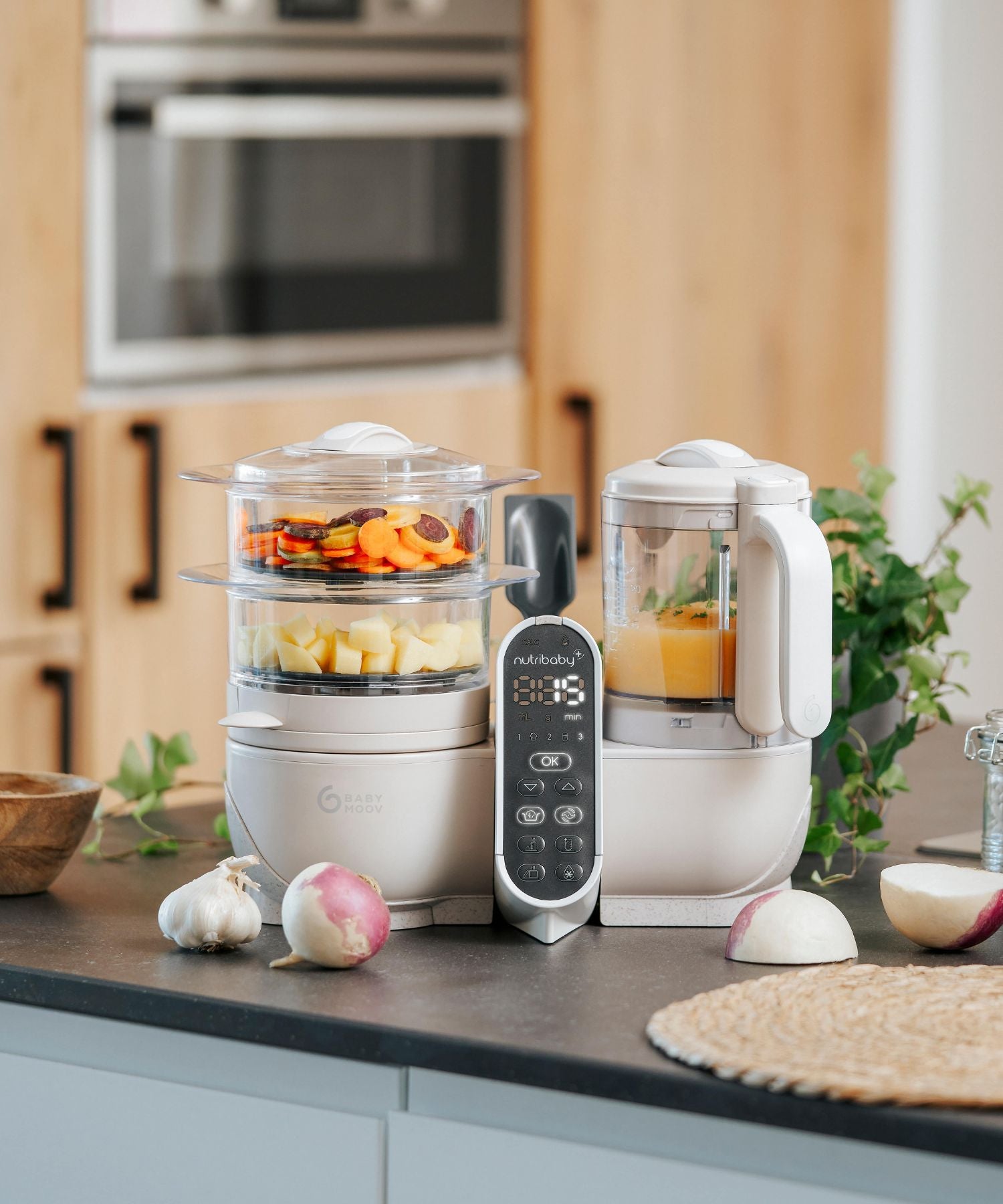 - Alles weich dünsten und mit dem Babymoov Nutribaby+ Dampfgarer & Mixer fein pürieren.