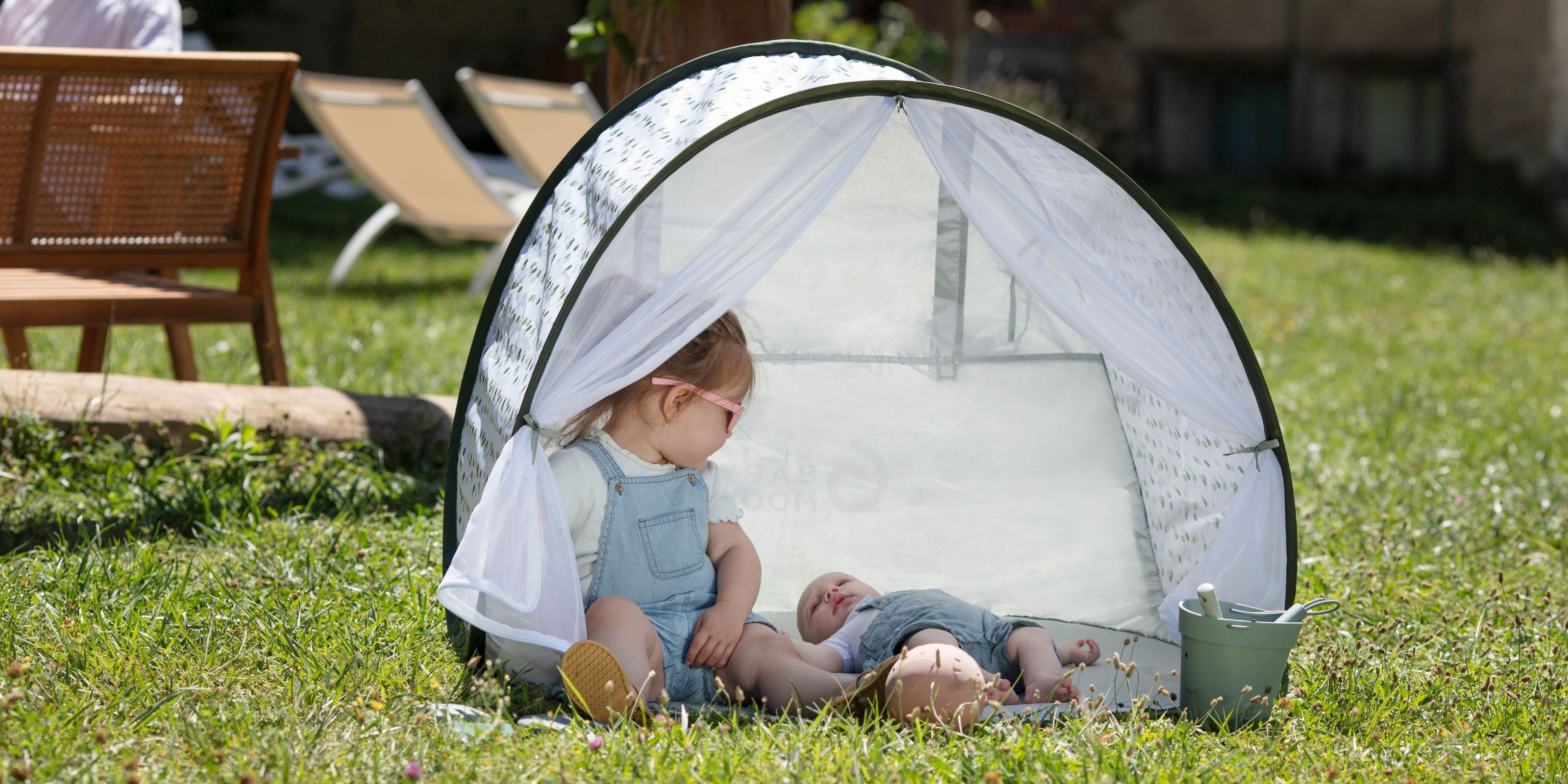 Babys und Kleinkinder haben eine besonders empfindliche Haut, die kaum Eigenschutz gegen UV-Strahlen besitzt. Laut Kinderärzten sollten Babys im ersten Lebensjahr möglichst gar keiner direkten Sonneneinstrahlung ausgesetzt werden. Da Sonnencreme bei Babys nur eingeschränkt empfohlen wird, ist ein physischer Sonnenschutz wie eine UV-Strandmuschel die beste Wahl.